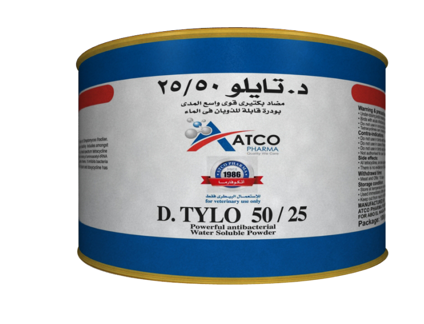 التركيبة | يحتوي كل 100 جم على: تايلوزين طرطرات 57.30 جم (يكافئ 50 جم من قاعدة التايلوزين) + دوكسيسايكلين هيدروكلوريد 30.60 جم (يكافئ 25 جم من قاعدة الدوكسيسايكلين) |